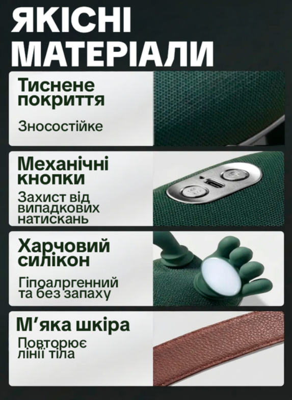 Дуже зручний масажер, особливо подобається підігрів — реально розслабляє.